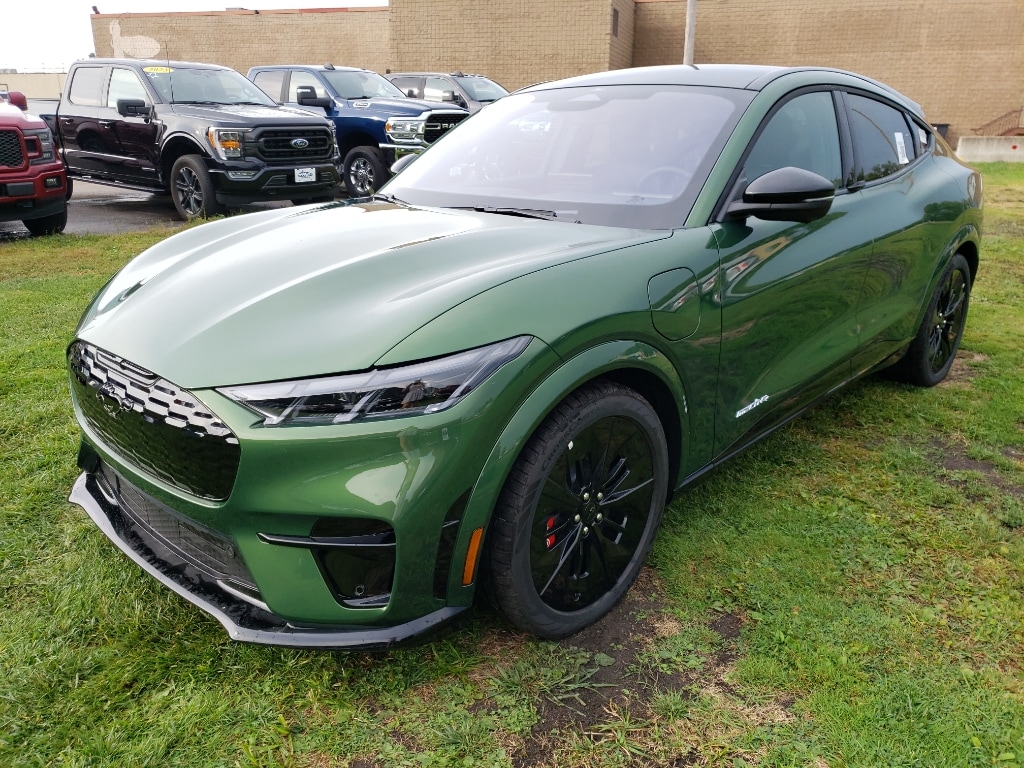This 1/2 ton suv features a hands-free Bluetooth phone system. See what's behind you with the back up camera on this Ford Mustang Mach-E. The installed navigation system will keep you on the right path. Keep your hands warm all winter with a heated steering wheel in the Ford Mustang Mach-E . This vehicle offers Android Auto for seamless smartphone integration. Apple CarPlay: Seamless smartphone integration for this model - stay connected and entertained on the go! This model has automated speed control that adjusts to maintain a safe following distance, enhancing highway driving convenience. The leather seats in this unit are a must for buyers looking for comfort, durability, and style. Enjoy the convenience of the power liftgate on this 1/2 ton suv. The vehicle contains elegant lines finished with an exquisite green color. Conquer any rainy, snowy, or icy road conditions this winter with the all wheel drive system on this 1/2 ton suv.Apple CarPlay: Seamless smartphone integration for this unit - stay connected and entertained on the go!